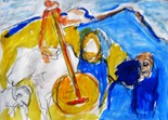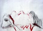 Ich erinnere mich an ein Ausbildungswochenende im IKT (Institut für Kunst und Therapie) München. Mit dem Film „Das weinenden Kamel“ wollte ich ein Beispiel kunsttherapeutischer Intervention bringen. Betroffenheit war im Raum über das Leid des Mutterkamels. Es war durch die überlang dauernde schmerzhafte Geburt so verletzt, dass es das neugeborene Junge ablehnte. Es ließ es nicht trinken. Es hätte nicht überleben können. Ein Musiker aus einer benachbarten Ortschaft wurde geholt. Die Wiegenlieder der Hirtin, begleitet von den Lautenklängen des Musikers vermochten die Blockade zu lösen. Das Kleine war gerettet. Sie nahm es wieder an. Spontan hielt Frau Thiesen die Gefühle in drei Zeichnungen fest, die bei ihr in Resonanz kamen: